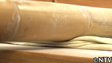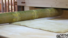 その青竹打ちとは、竹を使い、てこの原理で小麦を打つもの。 |