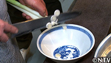 まな板で切ると、上と下、挟まれる形となり、細胞を壊してしまうが、まな板を使わずに空中で切ることで、ネギに含まれる辛味成分アリシンが含まれる細胞を壊さずに切ることができ、辛味成分が閉じ込められたまま。 |