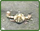 砂地や干潟に生息する小さなカニ。カニと言えば横歩きが定番だが、このマメコブシガニは前歩きもできる。 |