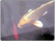 ここでは養鯉された鯉の販売をおこなっている。中に入ると、たくさんの鯉が泳ぐ姿が。その中に懐かしい1匹を発見した。