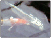 お久しぶりのご挨拶とばかりにさっそうと泳ぐ黄金色の人面魚。