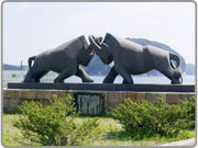 だん吉が体を張って戦った闘牛は、鎌倉時代、隠岐に流された後鳥羽上皇を元気づけるため、雄牛を集めて闘わせたのが始まりとされている。 また、この闘牛の文化はお隣中国でも盛んにおこなわれており、ここ都万村には中国の制作した闘牛のモニュメントが建立されている。