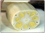 蓮根のシャキシャキした歯ざわりとピリッと利いた辛味は、熊本の人はもちろんのこと食通の間では絶品と評される郷土料理。 だが、蓮根の穴に残らず詰め込まれた辛子味噌の量を考えると、やはりかぶりつくのには少し勇気がいる料理といえる。