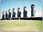 | かつてイースター島のモアイはそのほとんどが破壊され倒壊していた。しかしその事態を憂慮した日本の修復チームの協力によってモアイ像は修復された。