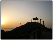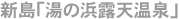 湯の浜露天風呂は24時間利用できる無料の露天風呂で、ギリシア古代神殿を思わせる造りの建物が特徴的。その建物は新島の鉱物であるコーガ石で作られている。