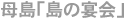 商店や飲食店が少ない母島。その事から、母島唯一の集落、沖村の人々が皆で酒盛りをする際は、夜な夜なガジュマルの木の下に集まっては宴会を開いている。 その時、各自一品ずつ持ち寄るのが島の義務になっている。