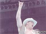 ここで達也も勝負に出た! 胸元を叩かれた永源の口から一気につばが飛び散った! しかも、つばは達也のカメラをめがけて飛び、見事しぶきがレンズに付いてしまった! 試合はモスマン選手が渕選手から3カウントを奪って終了。すると、永源選手が達也の元へ歩み寄り、「お前ちゃんと撮らないから負けたんじゃないかコノヤロー!」と、無茶な悪態をつけてきた! が、これもサービス精神旺盛な永源選手のパフォーマンス。 19:26、ここではじめての休憩に入った。かなり疲れているはずだが、充実感に満ちている達也。はじめてのケーブルさばきに、城島は気疲れした様子。太一は興奮ぎみで手から汗が止まらない。 その頃、リング上ではジャイアント馬場さんの追悼セレモニーが行われていた。そして、3人を見守ってきた福澤アナがここまでを振りかえると、それぞれの動きはほとんど問題なしと絶賛! だが、達也にとって正念場はこれから… そして次のメインイベントには、いよいスタン・ハンセン選手の登場! 激しい場外乱闘は毎度のこと。さらに、しっかり捕えなければならない右手を掲げる決めのポーズ。果たして、達也はこの2つをキッチリと押さえられるのか? ハンセンの入場時は特に注意するようディレクターから注意が入る。 そして、注目カードの選手入場がはじまった! メインは「三沢・小橋・秋山VSハンセン・田上・大森」の6人タッグマッチ。 まずは田上選手の入場。コスチュームには馬場さん作の絵が描かれており、それを捕えるよう指示が飛ぶ。これをしっかり捕えると、続いて青コーナーからついにハンセン選手が登場! 走って登場したハンセンはすぐにリングイン。その姿を捕えた達也の映像が使われた。さらに、三沢選手が登場! 達也への指示は、「三沢選手がリングに入る際、踏み入れる足元を捕え、そこから全体を映せ」というもの。かなり板についてきた達也は、この指示も着実にこなした。 20:09、メインイベントのゴング! 会場は熱気と興奮のるつぼ。序盤の戦いを低い姿勢で捕える達也、そのカメラワークをディレクターと福澤アナも絶賛。そして、満を持してハンセン選手がリングに入ると、3人に緊張が走る! ロープ際での攻防を、達也は臆することなく近づいて捕える。そして、この試合はじめての場外戦となり、すぐさま追いかける達也だが、ポールが邪魔して戦況を追えず、ここは反対側のカメラマンに委ねた。カメアシ城島はいつでも瞬時に動けるよう、わずかな隙をみてケーブルを丸めていく。 そして、リングサイドに待機するハンセン選手の横で試合を捕える達也だが、ハンセンの威圧感に後ずさりぎみ。そこへ、2回目の場外戦がはじまった。乱闘は達也のリングサイドとは反対側。ひとまず様子を見ようとしたその時…達也のそばにいたハンセンがリングを降り、場外戦に加わった! 夢中でハンセンを追いかける達也、そしてハンセンと小橋の攻防を間近で捕えると、小橋が鉄柱に飛ばされ、達也の方へなだれ込んできた。達也は間一髪で交わし、引き続き攻防を捕えようとするが、ケーブルに余裕がなく、振り回されてしまった。4カメ達也、痛恨のミス! 肝心な攻防を逃してしまった。 もうミスは許されない。しかし、ここで達也に問題発生! はじめて経験するカメラを担いでの動きに、達也の疲れはピークに達し、手ぶれがどうしても収まらない。すると、目の前で再び場外戦! 今度はハンセンと三沢の攻防。フェンスに飛ばされたハンセン、ここで達也は撮るものをハンセンのみに絞り込んだ。恐怖を抑えて歩み寄ると、この日一番の険しい表情を捕えることに成功し、見事その映像が使われた! 全試合を終え、興奮とプレッシャーの中、無事任務を果たすことができた。充実感に満ちた達也、興奮冷めやらぬ太一、そして、城島は想像以上のハードさを実感。それぞれの思いを胸に、3人は後楽園ホールを後にした。 六峯テレビの戦いは続く… |