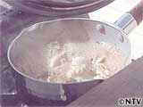![]() | 海の幸・山の幸が豊富に揃う静岡で、両者食材探しスタート! その土地の味を大事にする流れ板・松岡、「静岡といえば、やっぱり焼津でしょ!」と、まずは遠洋漁業の基地としてマグロの水揚げ高日本一を誇る「焼津港」へ向かった。300円でマグロを買うつもりか? そして、お店へ入ると早速相場をチェック、しかしマグロだけにどれも高い! すると、そこへ1パック139円の激安マグロを発見! それは、「血あい」。 「血あい」…魚を三枚におろした時、身の中央に縦に走る赤い血の多い部分。安い切り身の血あいは、水揚げ港以外では中々手に入らない。 たとえ安いとはいえ、パックごと買うのはもったいない。しかし、元が安いだけにバラでは売ってはくれない。そこへ、店主から「東名高速インター近くのお魚センターへ行けば、小分けしてくれるかもしれない」との嬉しい情報をもらい、松岡は早速急行! 一方、エプロン・城島は情報誌の「干物の生産高日本一」に目をつけ、駿河湾を中心に、近海物の海の幸が豊富に揃う「沼津港」へやってきた。1軒の干物屋へ入ると、いきなり「マイワシのしょう油干し」1枚70円を発見! 早速、半分で売ってくれないか交渉するが、あっけなく却下される。続いて「カタクチイワシのしょう油干し」一列580円を見つけるが、こちらもバラでは売ってもらえない。だが、城島はある事を思い出した…前回、サケ弁当を作った時のサケ一切れ140円に対し、干物1枚 70円は半額、これはお得! そこで、先ほど諦めた「マイワシのしょう油干し」をお買い上げ! さっそく、近くの波止場で調理開始。駿河湾をバックに、干物を網で丹念に焼き上げ、シンプルな一品「マイワシのしょう油干し炭火焼」が完成! その頃、「焼津おさかなセンター」に到着した松岡、中へ入ると大きなマグロと遭遇! 軒先のおかみさんに「彼女だと思って抱いてごらん!」と促され、持ち上げてみると…その重さを実感。さらにセンター内をくまなくまわり、目をつけたのは「カツオの玉子」100g80円。ご主人によると、おそらくこのお店でしか扱っていない珍味だという。貴重にして値段も手頃、松岡は100gを購入し、ここまで残金220円。 松岡は次なる食材を求めて静岡市内を移動。前方に「駒形通り商店街」を見つけ立ち寄ってみると、バラ売りの野菜を発見! しかも、どれも1個10円と超激安! 迷うことなくタマネギ1コ、ニンジン1本、シイタケ1本を32円(消費税込み)で購入し、これで残金は188円。さらに他のお店を見てみると、どこも安い! 実は、この商店街は「食料品の秋葉原」といわれ、連日どのお店も安さで競い合っている事で知られる。 続いて、近くの公園でこの日最初の調理にとりかかる。だが、松岡は未知の食材「カツオの玉子」の調理法に悩む。まずは手探りで、カツオの玉子と切ったタマネギとシイタケを、しょう油とカツオだしで煮込んでみる。そして味見してみると…松岡はその味に納得。はじめて扱う食材も見事に仕上げ、一品目「カツオの玉子煮込み」完成! 一方、城島は魚屋にいた。狙うは「シラス」と「桜エビ」だが、どちらも箱詰めされている。勇気をだして「桜エビ1匹」の値段を聞いてみると、さすがにご主人も困惑…。そこで作戦を変え、10gの値段を聞いてみると、ご主人は戸惑いながらも電卓で計算をはじめ、微妙な計り売りで桜エビ10g30円、シラス10g20円、のり10g20円で売ってくれた! これで残金160円。 その頃、松岡はお肉屋さんにいた。お店で一番安い肉は、おでんに使われる「豚の切り出し」100g30円。松岡は迷わず購入し、これで残金156円。そして、青空の広がる公園で2度目の調理、豚の切り出しと豪快に切った野菜をフライパンで炒め、そこへしょう油で味付け。こうして二品目「男の肉野菜炒め」が完成! すると、松岡の元にハトが集まってきた! 匂いに誘われたのか? 一方、城島は沼津市内の商店街へとやってきた。ところが、通りには食材を扱うお店が少なく、残金160円を手に立ち往生…。そこで、地図で次なる目的地を探してみると、現在地からほど近い市場を発見! その頃、松岡は米屋を訪ね、店頭に置かれた「そば粉」の値段を聞き始めた。ゴハンではないのか? 袋をバラにして100g100円で売ってくれるというが…残金は156円、今100円を使うと後が辛い。すると、やさしいご主人がタダで分けてくれるというが、それでは流れ板精神に反してしまう! 松岡は悩んだ挙句、店を後にした。そしてしばらく歩くと、おそば屋の店頭で再びそば粉を発見。だが、1袋500円、全く手が出ず。すると、店頭に出す前の粉を計り売りしてくれるという。松岡は念願のそば粉を90円分ゲット! これで残金66円。 一方、城島は沼津市の「清水町卸団地」に着くと、早速お米屋さんを発見。店頭には全国のお米がずらっと並び、どれも計り売りしてくれるという。城島はその中から地元産の「ひとめぼれ」1合を58円でゲット! これで残金は102円。さらに、律儀な城島は鉄腕DASHの宛名で領収書もゲット! 