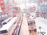 ![]() | ビクトリアピーク山頂、自転車にまたがる4人の男たち。ジャッキーに着いていく作戦の太一。ジャッキーにライバル心むき出しの松岡。自信満々、もちろん道には詳しいジャッキー。そして、地図で道を頭に叩き込んできた達也。 合図の鐘が鳴り、一斉にスタート! まず勢い良く飛び出したのはジャッキー、道を知り尽くしているだけに迷いはない。その後ろを松岡・達也・太一の順で続く。次第に斜度が増し、狭い歩道をブレーキ操作でゆっくり進む。 そして、スタートから0.3km地点で道が2手に別れ、細道を進むジャッキーに対し、達也は独り広い道を選び早くも勝負にでた! 松岡と太一は依然ジャッキーに続く。達也は細道を選んだジャッキーを「地元ぶってるだけ」と分析。 対するジャッキー、依然後を追ってくる松岡と太一に困惑ぎみ。松岡はとことんジャッキーを追う作戦。太一も同じ狙いのはずだが…三輪自転車が思いのほかスピードに乗らず、徐々に引き離される。そして、ジャッキーと松岡は後方に太一がいない事に気づくと、既に太一は100m以上も引き離されていた。 一方、達也は道路脇に階段を見つけると、得意の階段降りで進む。だが、階段は予想以上に急で長い。焦りながらも慎重なブレーキ調整と絶妙なバランス操作で見事クリア! 続いてカーブ状の階段に直面。山の斜面に沿った階段にはガードレールがなく、少しでもバランスを崩せば、奈落の底に突き落とされてしまう。ここでも慎重なハンドルさばきで余裕のクリア! その頃、マイペースで進む太一は、耳障りなブレーキ音をたてながら0.6km地点を通過。その200m前方を走るジャッキー、それを追う松岡は闘志に燃えながらも、延々と続く急斜面に恐れをなし、内股状態…。 一方、達也は1.5km進み、距離ではジャッキーをリード。すると、木々の隙間から海が見えてきた! 独自のコース選びが間違ってないと確信。さらに1.7km進んだところで市街地へ続く広い道にでた。しかし、坂が急に緩くなりスピードがでない。達也はハンドルを左右に振って必死に進む。 そして快調に飛ばすジャッキーだが、「イマドコォ〜?」と周囲を見渡す…地元で迷ったらしい。さらに問題発生! 進路方向が工事でふさがれていた! だが、ジャッキーは道路脇にわずかな隙間を見つけると迷わず進入。道端の段差を器用に渡り見事クリア! 続く松岡もフラフラになりながら何とかクリア! 2人は1.8km進んで市街地目前。松岡は依然ジャッキーをぴったりマーク。 さらに、遅れて太一もやってきた。工事現場に直面すると、同じく道路脇の隙間へ進入。だが、車幅のある三輪自転車が、段差に引っかかって中々進めない。太一は勢いをつけて強引にクリア! スタートから10分が経過し、行く手を模索する達也の周囲で、何やら「キィーキィー」と耳障りな音が…太一だった! 太一が1.3km、達也が2.2km進んだところで両者遭遇。スピードに乗れない太一に見送られ、達也は軽快に進む。 一方、ジャッキーと松岡は市街地手前の緩い坂で大苦戦! 今にも止まりそうな両者はハンドルを振って必死に進む。 その後方を進む達也の行く手に赤信号が立ちはだかった! このままでは止まってしまう…。極限まで速度を落とし時間を稼ぐと、停止線の手前でようやく信号が変わった! 達也もいよいよ市街地へ突入! スタートから15分、この先の市街地は傾斜が緩やかで、車や信号も多い。どんなルートを選ぶかが、勝負の分かれ目となる。 達也は2.5km進み、広い道を避けて再び階段へ突入。そして、その後を追う太一は 1.5km、達也を苦しめた信号を難なく通過すると、広い道を突き進む。