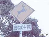 その頃、太一・本間先生のおさるさんチームは、こちらも緑の多い「練馬区大泉町」に到着。練馬区には東京23区内にある畑の22.6%が集中しており、ここなら発見の可能性大か? まずは近所で聞き込みをするが情報得られず、次に向かったのは「大泉中央公園」。野鳥の多い広大な自然の森、辺りは静けさを増す。そして公園の周りを走っていたその時、ついに発見! それはタヌキが描かれた動物注意の標識。車を降り標識の前でガッツポーズをとる2人、スタートから3時間が経過し、ようやく待望の1機目と遭遇! まだ近くにあると睨んだ2人はさらに周辺を探す。すると、またしても菱形の標識を発見! しかし、標識は2人の反対方向に建っているため確認に向かう。そして覗いてみると、「T字道路交差点あり」の警戒標識だった! 残念がる太一だが、それでも諦めず今度は公園の管理所へ情報収集に向かった。しかし係の方によると、動物警戒標識は先ほどの1ヵ所のみだという。 話によると、以前は雑木林やススキの野原にタヌキが生息していたが、道路が出来てから多くのタヌキが渡る時にひかれてしまったという。そして現在、その姿は確認されておらず、もはやタヌキが住む環境は無くなってしまったというのだ。建物の屋上で緑を望む太一と本間先生。野生動物は周りに道路が作られてしまうと、そこで生命が途絶えてしまうと、先生がしみじみ語った。次の目的地を決める2人、タヌキとくれば、次に狙うは「サル」。先生の推測によると、生息数の多さで栃木、群馬が有力であるとの判断。 一方、達也・浅田先生のシカさんチームは多摩ニュータウンに到着。周囲には山や多くの緑が残っているが、住宅街に挟まれており、「住みづらそうですね」と、タヌキを気遣う達也。すると先生「段々タヌキの気持ちになってきたでしょ?」と達也に問いかけ、さらに「体型も似てきた」と、厳しいツッコミが入る! これには達也、笑うしかない。2人はさらに山の方へと向かう。すると、並走する車のボンネットに犬のイラストが描かれた警戒標識に似たマークを発見。動物警戒標識に敏感になっている達也、この先発見の予感か? その頃、太一・本間先生のおさるさんチームは、東北自動車道を北上し埼玉県を移動中。すると、「その他の危険」を示す警戒標識を発見。見つけると嬉しいビックリマーク、喜ぶのは太一だけでなく、本間先生もだった!