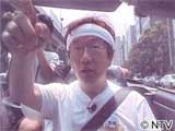 すると1カゴ600円のところ、300円まで下げてもらった。2人の主婦と欲しい分だけ分け合い、城島とちづる姉さんは「小えび」適量を50円でゲット。これで残金107円。 一方、松岡は最後の必須食材「牛肉」を求めて安いお店を探していると、「鶴橋」が安いとの情報をキャッチ! そこで松岡は焼肉やホルモンのお店が多い鶴橋へ向かった。しかし、残金135円、果たして手に入るのか? そして1軒のお肉屋さんへ入ると、豊富な品数の中から100g120円の「和牛肩肉」を発見! 迷わず購入し、残金15円で買い物終了。 その頃、城島とちづる姉さんも買い物を終え、港で最後の料理にとりかかっていた。ちづる姉さんは小えびをきざみ、隠し味に豚の背脂をくわえてダンゴ状に練る。そして玉子から白身を分けて、ダンゴに片栗粉をまぶし白身をからめる。さらに、衣にフランスパンをまぶして油で揚げる。これで背油のコクも効いたボリュームの一品が出来上がり! 五品目は「小えびのカリカリ揚げ」。 一方、松岡は牛肉料理にとりかかる。ショウガをすりおろしたしょう油ダレを用意し、細切れにした牛肉を炒め、そこにタレをくわえ弱火で煮詰めていく。焚きあがった御飯は懐石らしく型に入れ、その上に煮詰めた牛肉をのせると「牛肉の時雨煮御飯」ができあがり、これで流れ板・松岡の懐石御膳が完成。 城島とちづる姉さんも大詰め! 昆布を入れて硬めに焚いた御飯を、手早く冷ましながら酢飯にする。続いて具にはボイルした車えびと、残りの黄身で作った炒り玉子、さらに残りのハモ一切れをタレで焼くと、それぞれの具をラップにのせ、酢飯と共に丸める。すると、色鮮やかな5つの「手まり寿司」ができあがり、これで城島とちづる姉さんの懐石御膳も完成。 東ちづる・エプロン城島 作「手まり寿司御膳」(999円)。「牛肉とごぼうの炒め煮」「鶏もも肉のレモン挟み」「南瓜の胡麻衣揚げ」「鱧梅肉添え」「さくらんぼ」「小えびのカリカリ揚げ」「手まり寿司」、ちづる姉さんとお手伝い城島による合計6品の懐石弁当。 流れ板・松岡 作「こだわり懐石御膳」(985円)。「鶏むね肉たれ焼き柚胡椒添え」「花形練り南瓜」「鱧の三色焼き」「海老チリソース風味」「牛肉の時雨煮御飯」、こちらは計5品からなる流れ板・松岡、技の集大成。 そして、運命の試食がやってきた! それぞれ作った懐石御膳を手に、神田川先生のお店へと向かった。先生まずは松岡の「こだわり懐石御膳」の出来栄えをチェック。必須の5品目を上手に使い、ハモに3色の彩りをつけたアイデアを絶賛! 続いてちづる姉さんの「手まり寿司御膳」。すると、松岡よりも手のこんだ出来栄えと評価したが、やはり味を見てみないと分からない。 まずは松岡の「鶏むね肉たれ焼き柚胡椒添え」を試食。すると「焼きすぎ」と厳しいコメント。次いで「海老チリソース風味」は火の通り具合もちょうど良いと絶賛。「牛肉の時雨煮御飯」はちょっと辛めだが、御飯に合ってちょうど良いとの評価だった。続いて、ちづる姉さんの「牛肉とごぼうの炒め煮」、先生は見るなり「安いお肉やろな」と見た目でばれた。だが、固すぎず、ゴマの風味が効いて美味しく、お店にも出せると評価。そして「南瓜の胡麻衣揚げ」、これも先生のお店で出せると絶賛。そして口へ運んだその時、先生は柔らかさのあまりこぼしてしまった。 いよいよ判定の時。神田川先生が選んだのは…エプロン城島とちづる姉さんの懐石御膳だった! 勝因は手間ひまと愛情をかけており、何より味がうまいということ。対する松岡の懐石御膳は、「シンプルだが、これからもっと勉強して味の味をだせるよう頑張ってください」と有り難いお言葉をいただいた。 こうして、食の都・大阪での対決は、強力助っ人を率いたエプロン城島に初の軍配があがった! ロケ終了後、はじめて敗れた松岡は車の中で一言…「悔しい!」。流れ板は再起をかけ、早くも燃えている。 |