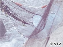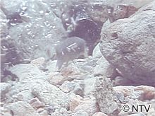 そして水中カメラでその様子を見ると、画面の端に魚のシッポが見えた! 続いて魚がどうに吸いこまれた…が、体を反転させ自力で脱出。果たして、獲物は入ってくるのか?