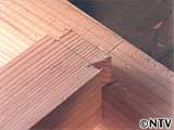 | ここで最初の仮組み、削ったほぞ穴にほぞを差し込む。はまりやすくするため、ほぞの角を落とす「面取り」をして、いざ差し込んでみると…入らない? そこで叩きながら差し込んでみると、徐々に入っていくが今にも割れそうで恐い…そしてようやくはまり、接続部分の感触を確かめてみると、しっかりはまっている! 達也のほぞ穴づくりはさらに続くが、周囲はやけに静か…他の生徒たちはお昼ご飯だった。食事を忘れて打ち込む達也、すると棟梁が気づいた…達也の削りかすがはじめは細々としていたが、ちゃんと形になって出てきており、ノミ使いがテンポ良く力強くなってきた! しかし、達也はやっぱり腹ペコだった。削りかすが「シャケ」に見えてきたらしい…。 |