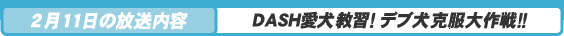 綱を引っ張り合い、ムキにさせることで犬は強く踏ん張り、力の入る部分のぜい肉が絞られる。小林先生による指導がはじまった。ところが肝心のマーブル、グッタリ休んで依然やる気なし…。まずは長瀬が綱で関心を引こうとするが、マーブルは興味を示すどころか寝ていた! 続いて飼い主の斉藤弘子さん、綱につながれたボールをマーブルの目の前で揺らしてみると、マーブルはようやく興味を示し、ボールの動きに視線を合わせた。そしてついにボールをくわえ、引っ張りはじめた! 闘争心は確かに沸いているようだが、やがて疲れはじめ、ボールをくわえたまま引っ張る方向についていくだけ…。 |