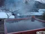 何故失敗に終わったのだろうか・・・。 「これで心配ないやろ!」やがて改良版露天風呂の完成! 湯煙の中うっすらと見えてきたのは・・・、城島の笑顔!何とか成功したらしい。周りにいた達也や明雄さん、清と共に喜びを分かち合う城島であった。 |