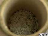 ご飯が炊けるまでおかずも作りたい。 しばらくすると石が焼けてきた。 ご飯は炊けただろうか、竹を真っ二つに割ってみる。