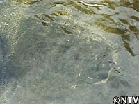 隊員たちは、破片を見落とさないよう顔を水面ギリギリまでくっつけて