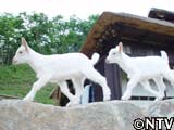 | 名前も決まり、より元気さが増したようにも見える「つかさ」と「つばさ」。 そんな2人を見つめている1人の男がいました。その男とは、最近入った新人AD。 初めて見る仔ヤギたちのあまりの可愛らしさに思わず見とれてしまったらしく、 小さく横に振るしっぽ、クリッとした大きな目、空に浮かぶ雲のように真っ白な体… 「カ、カワイイなぁ〜」 「ハウッ!!」 痛みに這いずり回るADの回りで、「八木橋にも父親らしいところがあったんだなぁ」と微笑ましくTOKIOとスタッフが眺めていたそうです… |