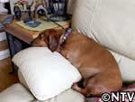 神奈川県に住む田辺さん宅。 マンションのドアをそ〜と開けると、 そこには元気なミニチュアダックスフンド二匹と奥さん。 達也「この子たちかな?」 と半信半疑ながら、動き回る二匹に連れられてリビングに着くとそこには・・・ 達也「もしや この子ですか?」 奥さん「この子です!!」 ソファーにはどっしりと座り、まん丸の目でこちらを見つめる メスのミニチュア・ダックス、ミルク5歳2ヶ月。