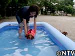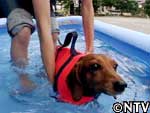 ミルクが取り組むダイエット作戦は『水泳』。 胴長短足の犬種は、腰に負担がかかりヘルニアになりやすい。