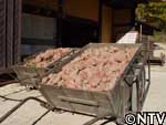 冬への足音も、すぐまで来ているDASH村。 気温8度の冷たい木枯らしが吹き止むことがない。 ![]() 古民家の前では掃き掃除の城島。 寒さに身震いしながらも、落ち葉集めに熱心。 一方、清は里山に入り、良さげな竹を探す。 何かに使うらしいが、一体何に使うのだろうか? そして、ヤギ小屋の明雄さんは、つかさとつばさの成長源となった マサヨの乳をせっせと搾っている。 「これも村にとっては重要な資源」と言うが、一体、何に使うのか? すると、先ほど清が切り出してきた竹を節ごとに細かく切り、 中にマサヨの乳を入れる達也。そしてそれを何度か振って、腰に装着。 腰をフリフリしながら向かったのは、サツマイモ畑。 そう、今年も嬉しい「サツマイモ堀り」の始まりである。 城島「出てきた!出てきた!まさに芋づる式に!えぇがな!えぇがな!」 男達が手にしたサツマイモは、直径10cm、長さ15cmを越える、 どれも大きいものばかり。 ![]() ![]() 達也も先ほどの竹筒を腰に付けながら芋掘りを手伝う。 上下左右に腰を振り、「千鳥足」のようなアクションでの収穫。 収穫も終盤に差し掛かった頃には、去年の収穫量を大幅に越えていることが 分かった。さらに、大きさも去年に比べ格段に成長している。 となれば、早く食べたい「焼き芋」 今朝、城島が集めた落ち葉の山にいよいよ点火することに。 すると・・・ 達也「危ない!危ない!気をつけてね」 日暮れの木枯らしが、積み上げた落ち葉を舞い上げる。 民家に燃え移らないように注意しながら、いよいよ点火。 「美味しい焼き芋を作るには、火に入れるタイミングが大切」 と昨年の焼き芋行商で培った知識を元に、城島が濡れた新聞紙で包んだサツマイモを投入する。 さらに、温度が上がり過ぎないようにもみ殻を被せる。 イモはじっくり低温で焼くのが甘味を増すのだという。 じっくり待つこと2時間・・・ 城島「えぇ感じに焼けとるがな」 出来上がりの焼き芋を二つに割ると、湯気と共に食べ頃を示す山吹色の実が 姿を現した。 城島「いっただっきまぁーす!」 達也「あ、これも出来てるんじゃない?」 すると、腰につけていた竹筒をはずす達也。 竹の中には、クリーム色の物体が。 そう、マサヨの乳に含まれていた乳脂肪を振り、固まらせることで作った 「マサヨバター」 早速、焼き芋につけて食べてみると・・・ 城島「うわぁー、美味い!!」 達也「これで育ったんだもんな、つかさとつばさが」 ![]() 村の恵みをまとめて頂けた男達の一日が、 またこうして笑顔と共に暮れていった。 |