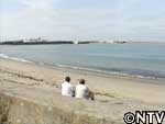 青空が広がる海岸では海を眺めながらおむすびを食べる夫婦の姿がある。