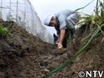 ハウス内に入ってトマトの生育を確かめる達也と太一。 達也「すッげー伸びてる!」 順調な生長を見せるハウス栽培のトマトには、 直径6cmまで育った実もついている。 土もサラサラのまま。後は、赤くなるのを待つのみ。 一方、露地栽培のトマトも、雨にも負けず順調に生長していた。 しかし、この後一番恐れていた事が露地栽培のトマトを襲った。