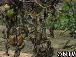 緑の葉が生い茂っていた露地栽培のトマトは茶褐色に枯れていた。