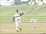 そこで、元右投げの大投手・江夏さんに二人のフォームを見てもらい左投げのコツを教わることに。 まずは沖山君が右で投げてみると・・・「球速76.3km」。 これには江夏さんも改善点はないという、ナイスピッチングだ。 次は問題の左投げだが、不慣れな手つきでグローブをはめかえ、江夏が見守るなか 投げてみると・・・「球速44.8km」。 ホームベースの手前で球がバウンドしてしまいキャッチャーまで届かなかった。