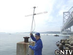 海に囲まれた場所であいまいながらも大阪の方向にアンテナを向けると、音だけはなんとか聞こえてきた! |