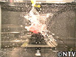 割れた風船内の水と金魚は勢いよく飛び散ってしまい、金魚の周りには水が少しだけしか残らなかった。 |