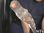ゆっくりとBOXから出てきた水の塊と金魚の姿は、無重力状態で空中散歩を楽しんでいるように見えた。