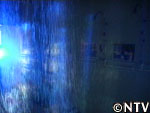 さっそく持参した映像プロジェクターをシャワーの雨に照射してみる。