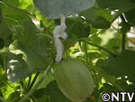せっかく成ったメロンの卵を落としてしまわないように、ここで達也はできたメロンを紐でつるす。