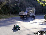 見ている方が肝を冷やすようなスピードで、早くも回収車の真後ろに着けた!