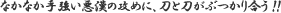 刀を振る音「ブン!ブン!」(松岡がテニスラケットを振る)
