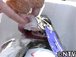 と姿を見せた銀色の魚体。エラが真っ赤なのは新鮮な証拠だ。