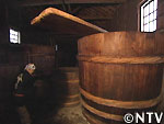 古い木戸を開けた先に待っていたのは2m近い高さの味噌樽。