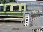 後方から迫る江ノ電を感じつつ、一度も振り返ることなくゴールした松岡。