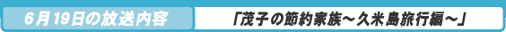 梅雨の晴れ間、茂子は商店街で福引き。そして、なんと特等の沖縄・久米島の旅が当たってしまった。早速3人で久米島への準備開始。まず茂子が用意したのは水筒に沸かした牛乳を入れ、その後になにやらとろみがついたものを入れた。次に用意した物は掃除機のホース、ゴミ袋、空のペットボトル、サランラップ、輪ゴム、米ぬかなど、一体これらは何に使うのか。