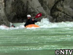 さすがに急流黒部川、先手を取ったのはカヌー山口。ぐんぐんスピードを上げて長瀬を置き去りにする。