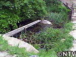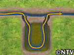 そこで、この新たな池はトンボがやってくるのに適した環境を作ることに、そして清掃中の溜池は、その深さによって溜まりがちな底の泥を、沢とつなげることによってできた水流で動かす工夫をこさえる。