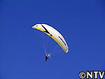 その視線の先には、澄んだ空気の中を滑空するモーターパラグライダーの姿が!
