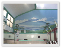 こちらにも描かれていた銭湯背景図は、大正元年(1911年)東京神田猿楽町にあった「キカイ湯」のご主人が、子どもに喜んでもらおうと画家の川越広四郎に依頼して富士山の絵を描かせたことから始まったと言われている。