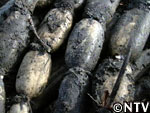 土から掘り出す前にレンコンを折ってしまった長瀬。