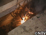 そこで、わらを燃やして作った黒い灰に赤土の泥をのせ、広げたかすがいの上に釘と一緒に置いて熱する。