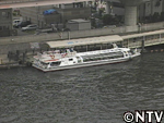 先を越されたカヤックチームだったが、水上バスは別の船とのニアミスを避けるためにいったん停止中。