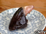 すると厨房から出てきたのは、なんとマグロの心臓!そしてそれを調理した「マグロの心臓のつくだ煮」をいただくことに。
