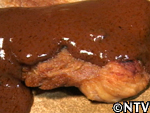 出てきた料理にかかっているソースは、まさにチョコの色。そして香りもチョコ。果たしてポークと合うのか不安になるところではあるが、スタミナのために意を決して口に運ぶ。