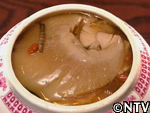 冬虫夏草、なまこ、干しあわびなど10種類以上の珍味、生薬を壷で蒸し煮にしたスープ。